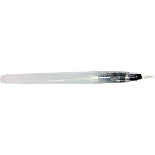 The Jasart Aqua Brush is a refillable multipurpose brush Fill with water to blend or with inks to create water colour effects Removable cap prevents excess water leakage and protects the brush when not in use Click close pen lid ensures an air tight closure Pocket clip on lid Hexagon handle for easy grip, also avoids the pen rolling away when not in use Clear barrel will show true colour if ink added Soft white synthetic bristles Available in Round Fine, Medium and Thick nibs and Flat Medium