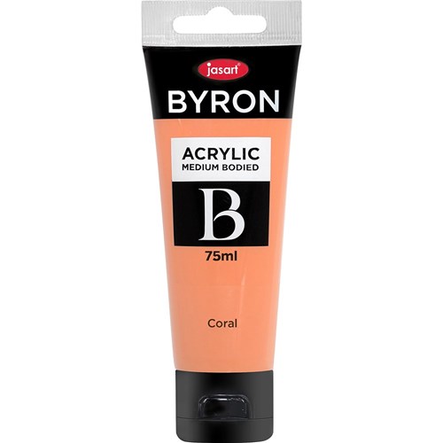 Jasart Byron is a medium bodied acrylic The colours are bright, intense and permanent after they have dried Can be used on most surfaces such as paper, canvas, wood, glass, plastic and more Warm and Cool Primary colours will allow you to have a superior colour mixing Non toxic 75ml tubes available in 30 colours including 4 fluoro colours and 2 metallic colours Each individual tube is foil sealed Also available in 1 Litre bottles in 23 colours including 2 metallic colours.