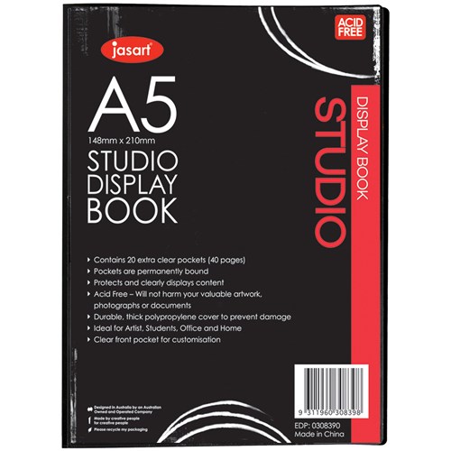 Contains 20 clear pockets Pockets permanently bound 0.75mm cover made from durable, thick polypropylene to prevent damage Protects and clearly displays content Acid Free: will not harm your valuable photographs, documents and artworks Ideal for Artist, Students, Office and Home Clear front pocket for customisation Available in A2, A4, A3 and A5