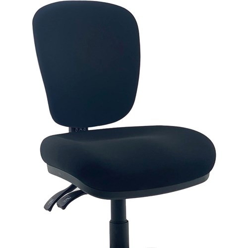 Weight Rating: 135kg Chair Dimension: Seat Width 500mm, Seat Depth 460mm, Back Height: 550mm. Unit Weight: 12Kg. NTR Commercial Grade Fabric Black Back with Moulded Seat Foam for Supreme Comfort. 3 Lever Easy to Use Heavy Duty Ratchet Mechanism. Seat angle, back tilt, and seat height adjustment. 5 Way 640mm Commercial Grade Nylon Base. Heavy Duty Gas Lift Cylinder. Fire Retardant Contoured Moulded Foam. 7 Years Manufacturer's Warranty. Delivery, installation and assembly charges may apply to furniture. Please enquire to confirm.