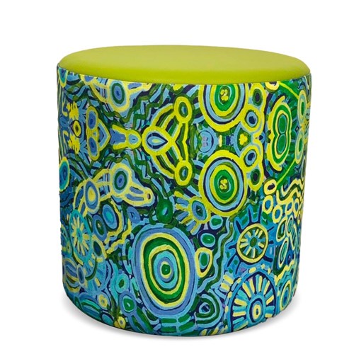 A unique commercial fabrics designed by Cedric Varcoe (Indigenous artist) combined with K2 Commercial PU Leather. Weight rating: 120kg. Indicated seat hours: 12 hours. Dimensions: 450 Diameter x 450mmH. Provides flexible seating for open plan areas, reception and education spaces. Concealed feet. Fire retardant contoured moulded foam. Available in different size on request. Product image for reference only. Design pattern may differ as a result of variations in the art work. 5 Years Manufacturer's Warranty. Delivery, installation and assembly charges may apply to furniture. Please enquire to confirm.