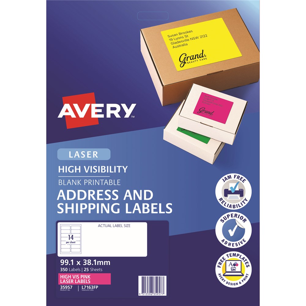 Avery High Visibility Shipping Laser Labels Pink L7163FP 99.1x38.1mm 14UP 350 Labels