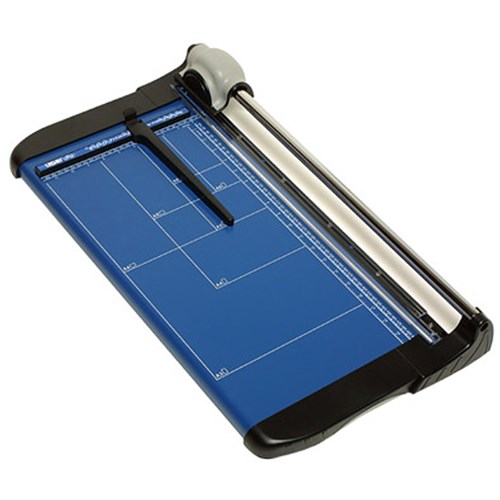 Strong and sturdy solid metal cutting base Ergonomic replaceable cutting head with self-sharpening rotary blade Transparent hand guard clamps on to paper while cutting Adjustable paper guide, Scale marking with DIN paper sizes Wall mountable for easy storage A3 size cuts up to 15 sheets (80gsm paper)