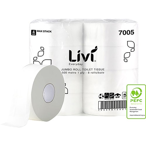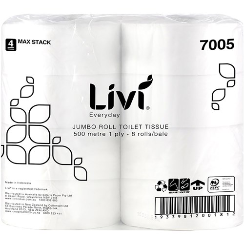 Livi Everyday Toilet Paper Jumbo Roll 1 Ply 500m Pack Of 8
