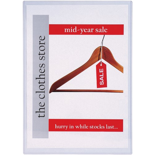 Crystal clear, rigid high quality PVC, sealed on 3 sides. Side opening. Durable and washable. Excellent protection for menus, certificates, price cards, presentation and display material. Use instead of lamination, contents easily inserted and removed.
