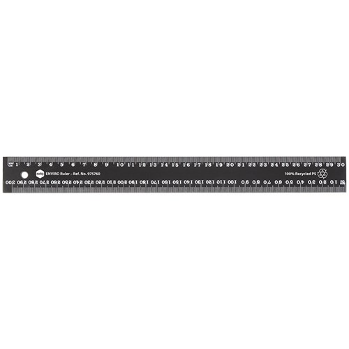 Made from 100% recycled Polystyrene. Black 30cm ruler with metric measurements. Strong and durable.