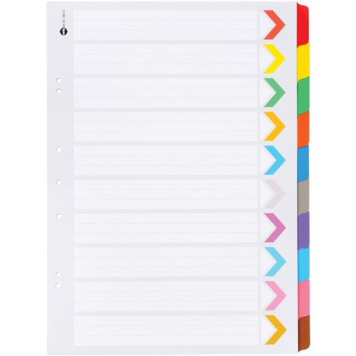 Marbig Plastic Indices & Dividers A3 Reinforced 10 Tab Portrait Multi Colour