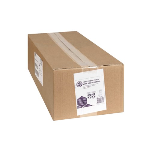 It is made of 100% recyclable paper. It is an excellent alternative to plastic based protective wraps. Enhance the customer unwrapping experience. Convenient dispenser box. Includes white lining paper and honeycomb wrap. 80 metres x 500mm of unstretched honeycomb paper.