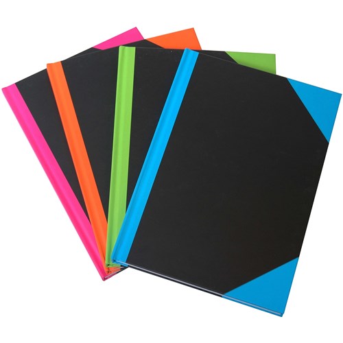 • Hardcover casebound notebooks with bright contrast colour covers.