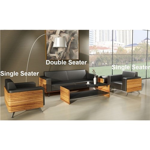 Black leather with timber side panels and aluminium feet. This matching Novara sofa suite will compliment any professional executive environment. 3 Year Manufacturer's Warranty. Delivery, installation and assembly charges may apply to furniture. Please enquire to confirm.