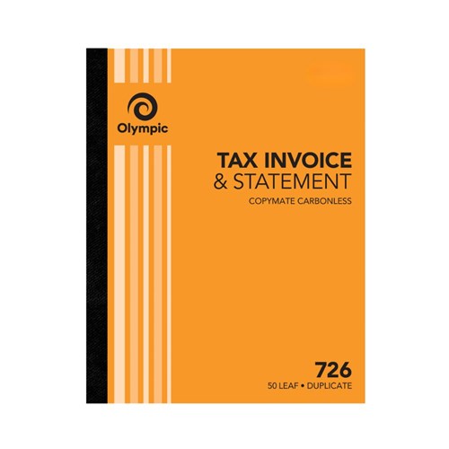 Olympic 726 Invoice/Statment Book Carbonless Duplicate 250 x 200mm 50 Leaf Orange