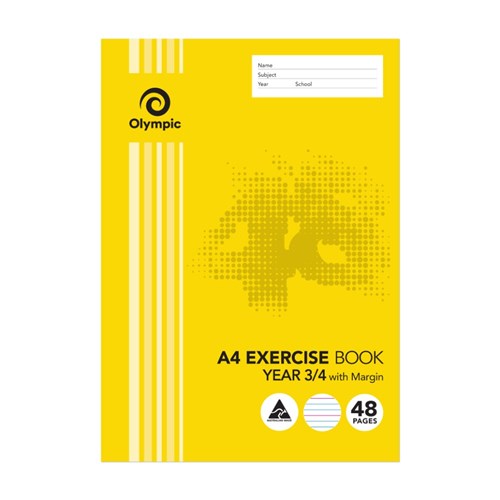 Olympic EY34 Exercise Book QLD Year 3/4 A4 12mm Ruled With Red Margin 48 Page