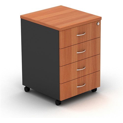 OM Mobile Pedestal 4 Drawer 468W x 510D x 685mmH Cherry And Charcoal