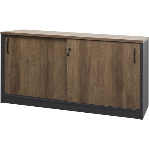 OM Premier Credenza Sliding Doors 1500W x 450D x 720mmH Regal Walnut And Charcoal