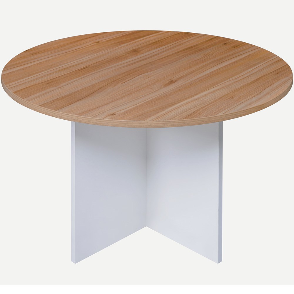 OM Premiere Round Meeting Table 1200 Diameter x 720mmH Virginia Walnut and White