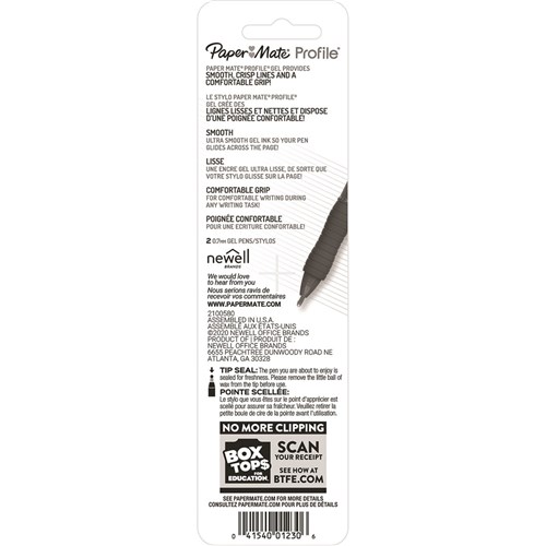 Papermate Profile Gel Pen Retractable 0.7mm Black Pack of 2