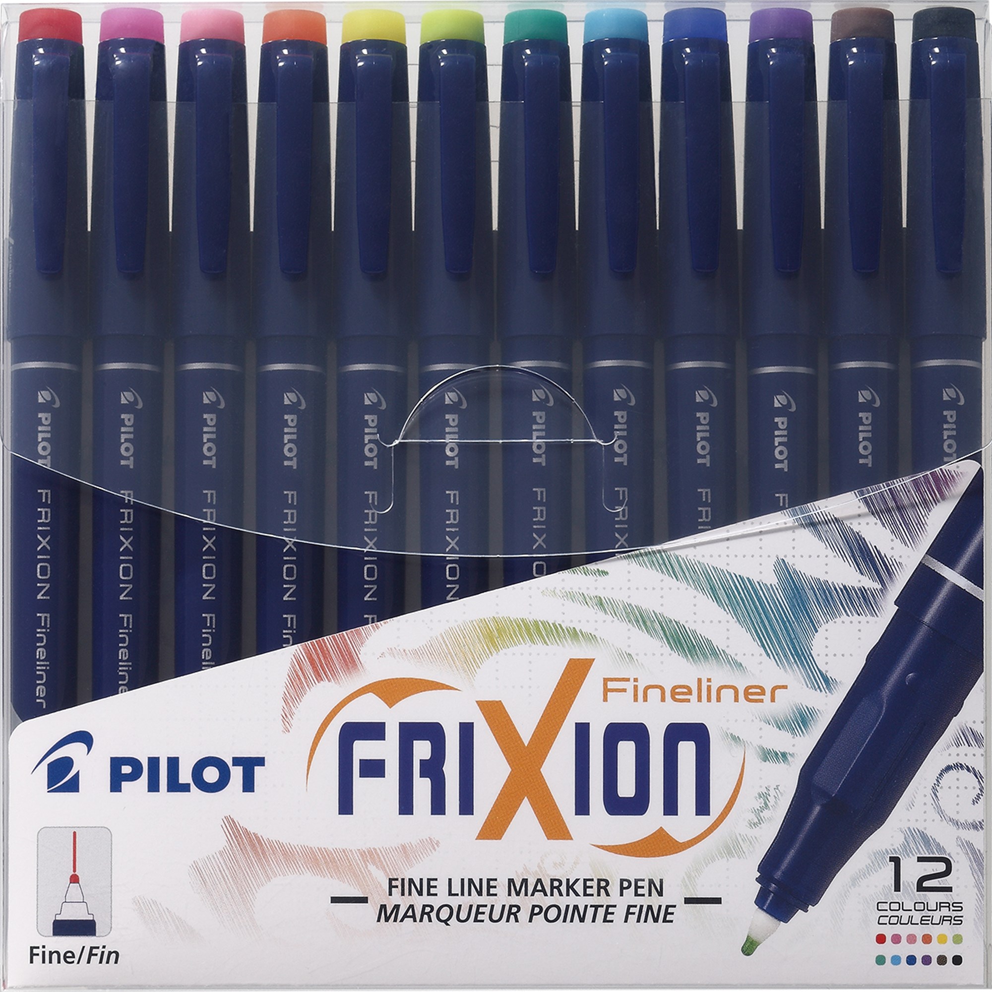 Pilot Frixion Fineliner Pen Erasable Super Fine 0.45mm Assorted Wallet of 12