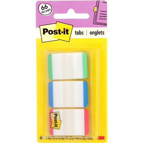Post-It 686L-GBR Durable Tabs 25x38mm White With Red Blue Green Pack of 66