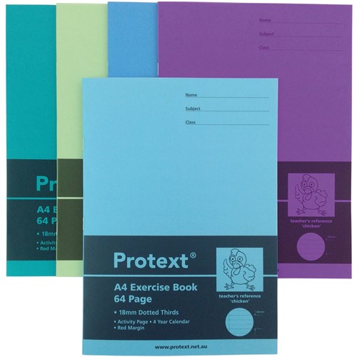 Protext Exercise Book A4 18mm Dotted Thirds 64 Page Chicken