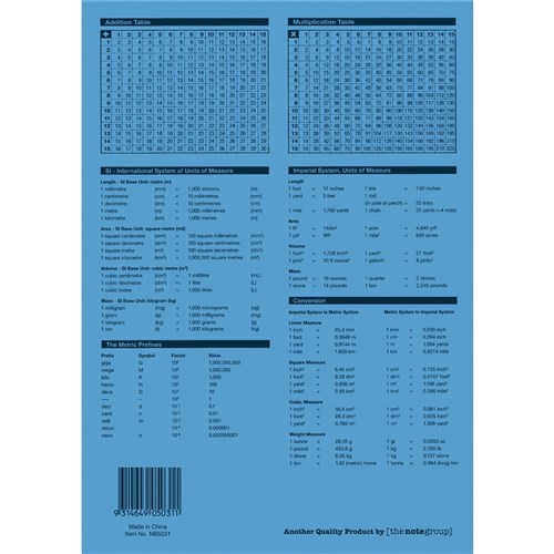 • 4 year calendar, activity page, maths tables & red margin.