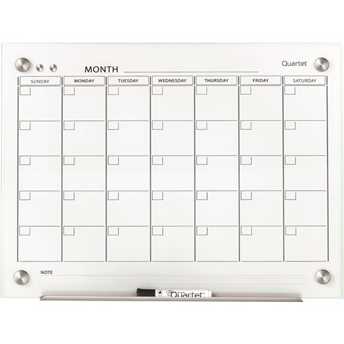 Provides a professional upscale appeal without sacrificing any of the durability of a classic whiteboard. Tempered glass, magnetic dry-erase board will not stain or ghost. Magnetic quality allows secure hanging of papers from surface with rare earth magnets. Ideal for personal, daily use. Frameless board design blends seamlessly into any environment. Board is easy to install with included pass-through mounting hardware. 1-month calendar design is reusable month after month. Write on white glass surface with any colour dry-erase markers. Multiple board sizes available. 15 Year Manufacturer's Warranty.