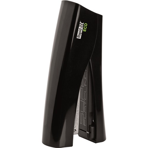 Made from 100 percent post-consumer recycled plastic and with packaging made of recycled cardboard. 76mm stapling depth. Staples up to 25 sheets of paper (80 gsm). Patented Super Flat Clinch technology reduces paper stacks by 40 percent. Convenient stand up function. Accepts 24/6 or 26/6 Rapid Strong staples. 5 Year Manufacturer's Warranty.