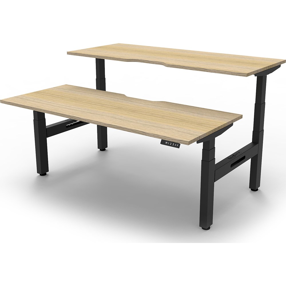 The entire Boost+ range has now been performance tested and is compliant to the AFRDI standards for general safety, strength, durability and stability in all sizes and configurations based on AS/NZS 4442:201. Natural Oak top Black frame. Unit Dimensions: 1200 W x 1500 D x 620mm - 1270mm H (Overall). Per User: 1200mm W x 750mm D x 620mm - 1270mm H. E0 rated top, powder coated base. Keypad safety lock and reminder alarm setting. Digital control panel with 3 pre-set positions and LED display panel. Anti- collision and anti-tilt technology. Dual motor 3 stage motorised legs. 140kg weight loading capacity. 10 Year Manufacturer's Warranty. Delivery, installation and assembly charges may apply to furniture. Please enquire to confirm.