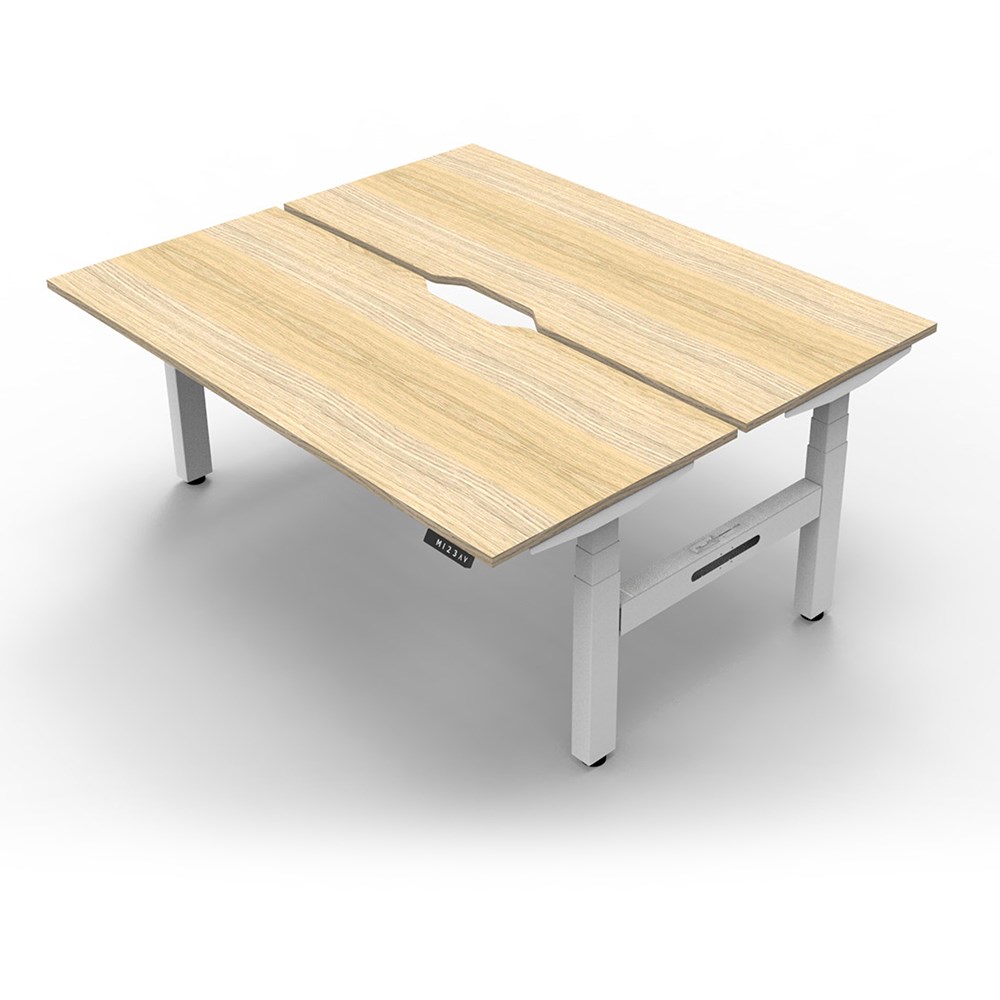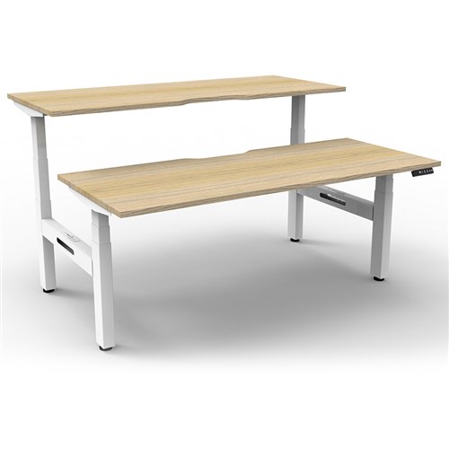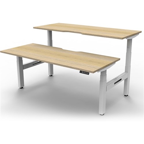The entire Boost+ range has now been performance tested and is compliant to the AFRDI standards for general safety, strength, durability and stability in all sizes and configurations based on AS/NZS 4442:201. Natural Oak top White frame. Unit Dimensions: 1500 W x 1500 D x 620mm - 1270mm H (Overall). Per User: 1500mm W x 750mm D x 620mm - 1270mm H. E0 rated top, powder coated base. Keypad safety lock and reminder alarm setting. Digital control panel with 3 pre-set positions and LED display panel. Anti- collision and anti-tilt technology. Dual motor 3 stage motorised legs. 140kg weight loading capacity. 10 Year Manufacturer's Warranty. Delivery, installation and assembly charges may apply to furniture. Please enquire to confirm.