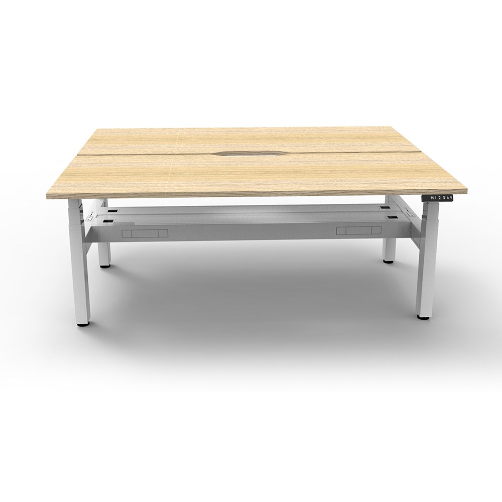 Unit Dimension: 1200mm W x 1500mm D x 1330mm H (Overall). Per User: 1200mm W x 750mm D. Desk Height: 620-1270mm H. The entire Boost+ range has now been performance tested and is compliant to the AFRDI standards for general safety, strength, durability and stability in all sizes and configurations based on AS/NZS 4442:201. Smooth and quiet adjustment at 38mm per second. Min Digital control panel with 3 pre-set positions, LED display panel, keypad safety lock and reminder alarm setting. Natural Oak coloured worksurface with 750mm depth top. 50mm D scallop cut out to rear. Back to Back Workstation with Cable Tray. Dual Motor 3 stage motorised legs. 140kg weight loading capacity. 10 Year Manufacturer's Warranty. Delivery, installation and assembly charges may apply to furniture. Please enquire to confirm.