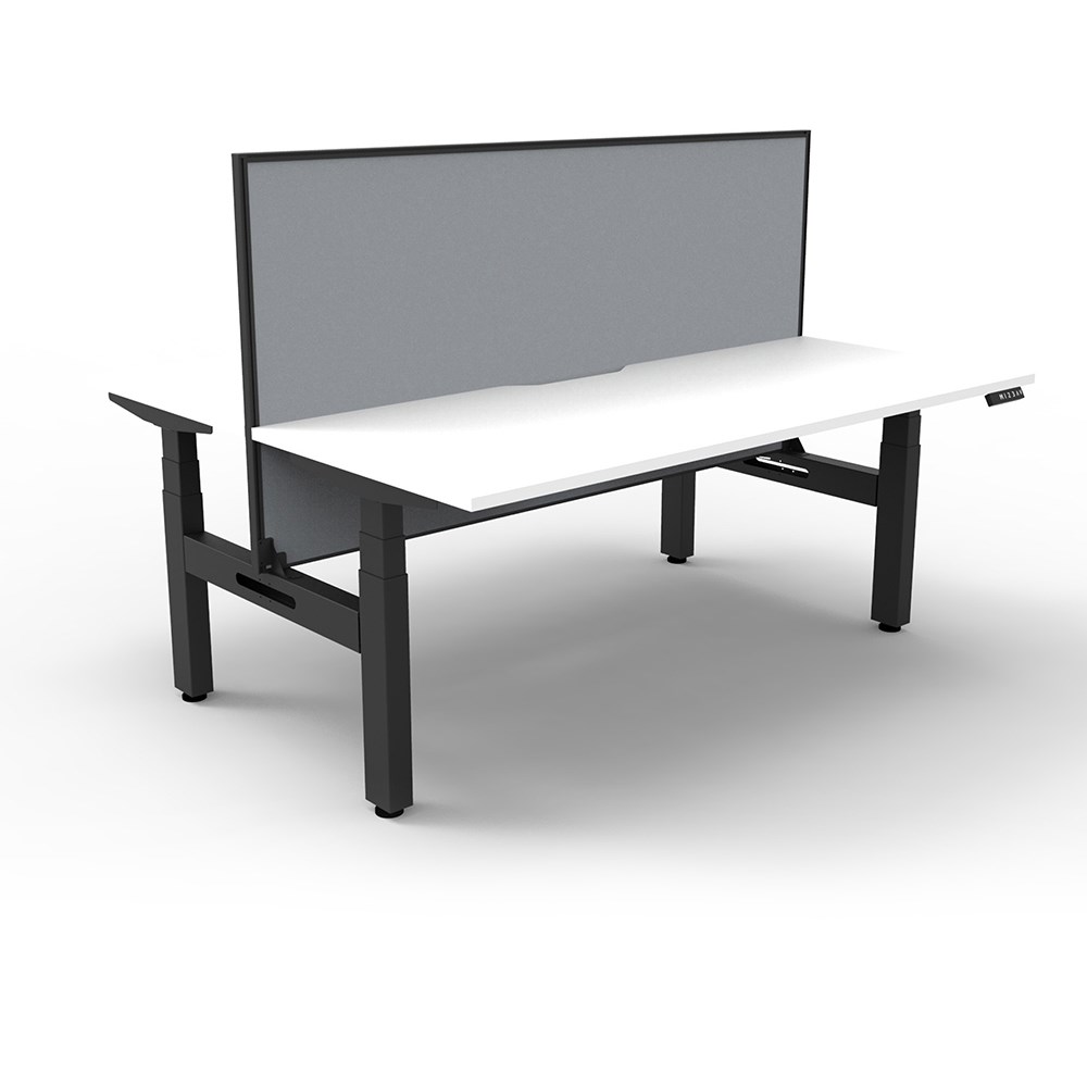 The entire Boost+ range has now been performance tested and is compliant to the AFRDI standards for general safety, strength, durability and stability in all sizes and configurations based on AS/NZS 4442:201. Unit Dimension: 1200mm W x 1500mm D x 1330mm H (Overall). Per User: 1200mm W x 750mm D. Desk Height: 620-1270mm H. Includes pinnable privacy screen in grey fabric with matching black powder coated frame. 900mm H x 30mm T. Smooth and quiet adjustment at 38mm per second. Min Digital control panel with 3 pre-set positions, LED display panel, keypad safety lock and reminder alarm setting. Natural White coloured worksurface with 750mm depth top. 50mm D scallop cut out to rear. Back to Back Workstation with Screen. Dual motor 3 stage motorised legs. 140kg weight loading capacity. 10 Year Manufacturer's Warranty. Delivery, installation and assembly charges may apply to furniture. Please enquire to confirm.