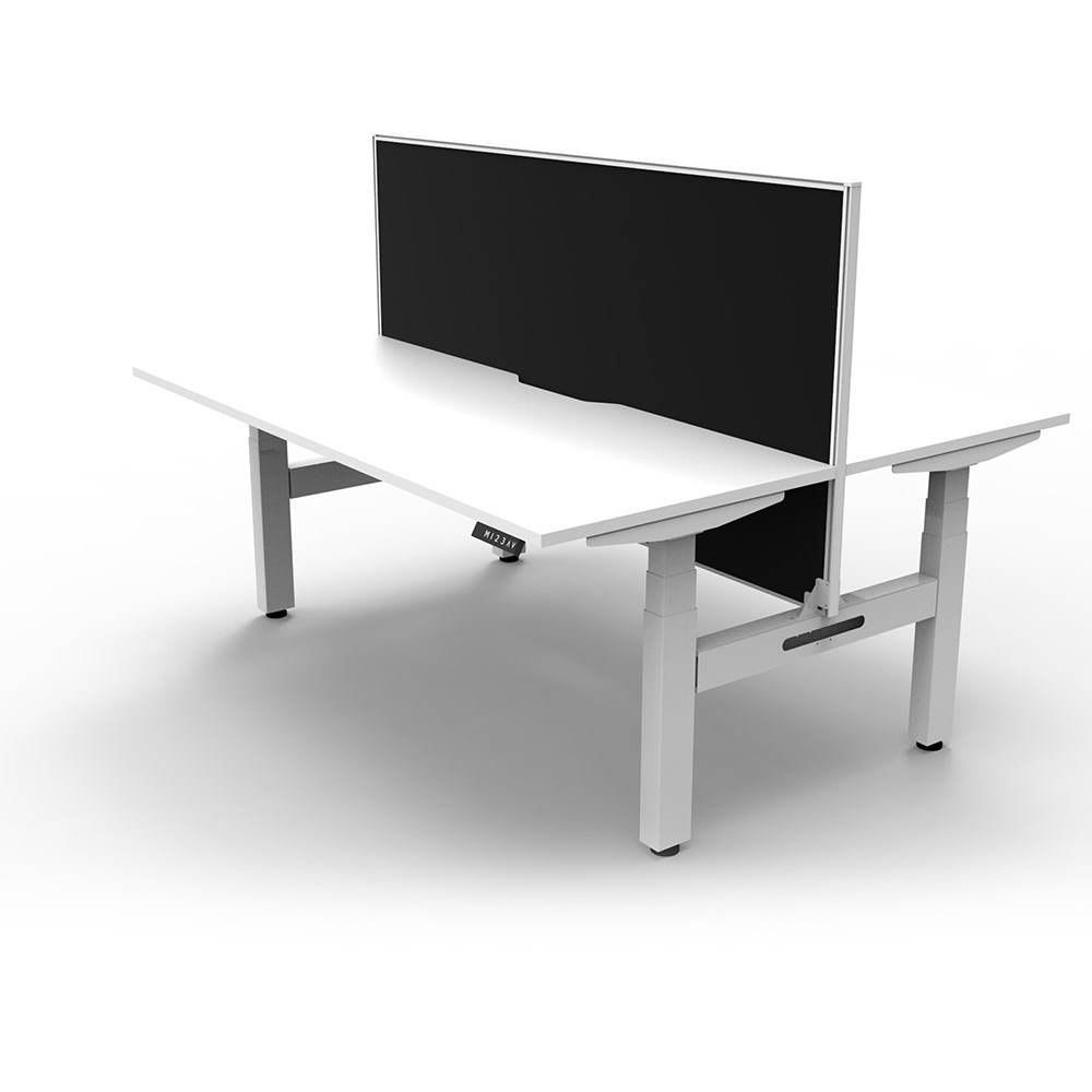 The entire Boost+ range has now been performance tested and is compliant to the AFRDI standards for general safety, strength, durability and stability in all sizes and configurations based on AS/NZS 4442:201. Unit Dimension: 1200mm W x 1500mm D x 1330mm H (Overall). Per User: 1200mm W x 750mm D. Desk Height: 620-1270mm H. Includes pinnable privacy screen in black fabric with matching white powder coated frame. 900mm H x 30mm T. Smooth and quiet adjustment at 38mm per second. Min Digital control panel with 3 pre-set positions, LED display panel, keypad safety lock and reminder alarm setting. Natural White coloured worksurface with 750mm depth top. 50mm D scallop cut out to rear. Back to Back Workstation with Screen. Dual motor 3 stage motorised legs. 140kg weight loading capacity. 10 Year Manufacturer's Warranty. Delivery, installation and assembly charges may apply to furniture. Please enquire to confirm.