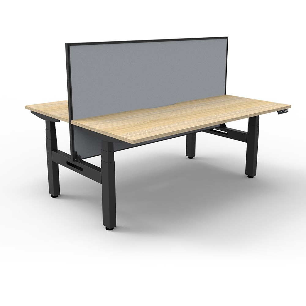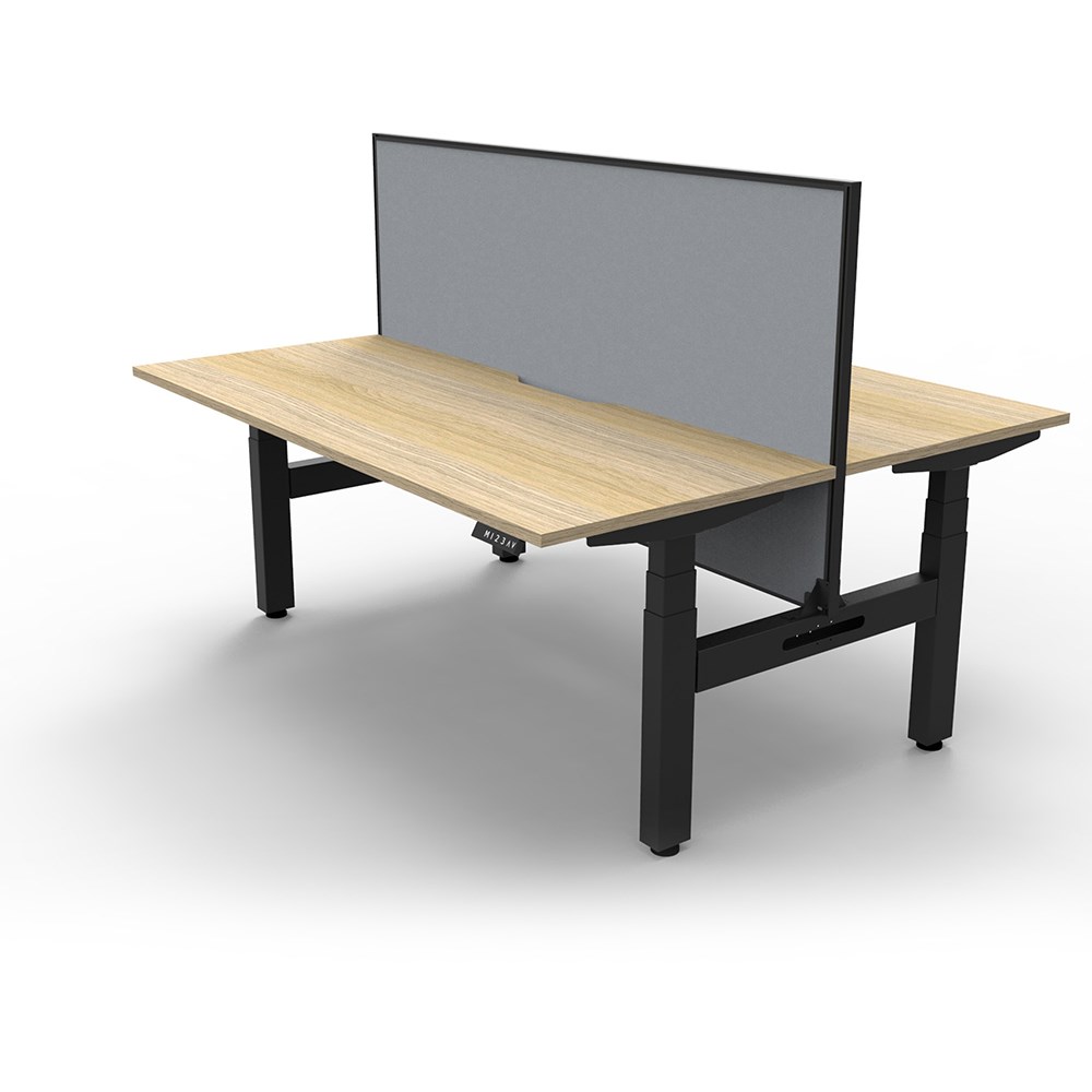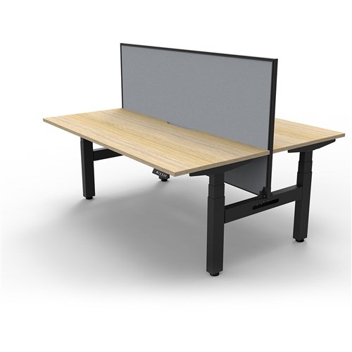 The entire Boost+ range has now been performance tested and is compliant to the AFRDI standards for general safety, strength, durability and stability in all sizes and configurations based on AS/NZS 4442:201. Unit Dimension: 1800mm W x 1500mm D x 1330mm H (Overall). Per User: 1800mm W x 750mm D. Desk Height: 620-1270mm H. Includes pinnable privacy screen in grey fabric with matching black powder coated frame. 900mm H x 30mm T. Smooth and quiet adjustment at 38mm per second. Min Digital control panel with 3 pre-set positions, LED display panel, keypad safety lock and reminder alarm setting. Natural Oak coloured worksurface with 750mm depth top. 50mm D scallop cut out to rear. Back to Back Workstation with Screen. Dual motor 3 stage motorised legs. 140kg weight loading capacity. 10 Year Manufacturer's Warranty. Delivery, installation and assembly charges may apply to furniture. Please enquire to confirm.