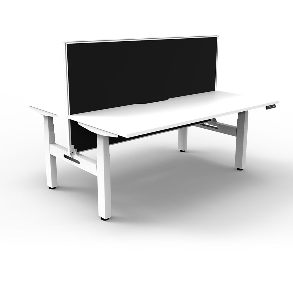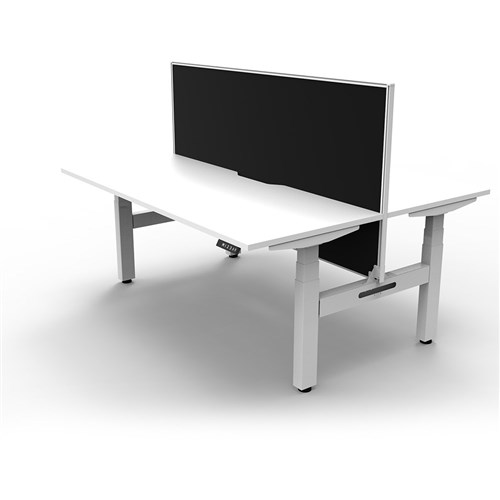 The entire Boost+ range has now been performance tested and is compliant to the AFRDI standards for general safety, strength, durability and stability in all sizes and configurations based on AS/NZS 4442:201. Unit Dimension: 1800mm W x 1500mm D x 1330mm H (Overall). Per User: 1800mm W x 750mm D. Desk Height: 620-1270mm H. Includes pinnable privacy screen in black fabric with matching white powder coated frame. 900mm H x 30mm T. Smooth and quiet adjustment at 38mm per second. Min Digital control panel with 3 pre-set positions, LED display panel, keypad safety lock and reminder alarm setting. Natural White coloured worksurface with 750mm depth top. 50mm D scallop cut out to rear. Back to Back Workstation with Screen. Dual motor 3 stage motorised legs. 140kg weight loading capacity. 10 Year Manufacturer's Warranty. Delivery, installation and assembly charges may apply to furniture. Please enquire to confirm.