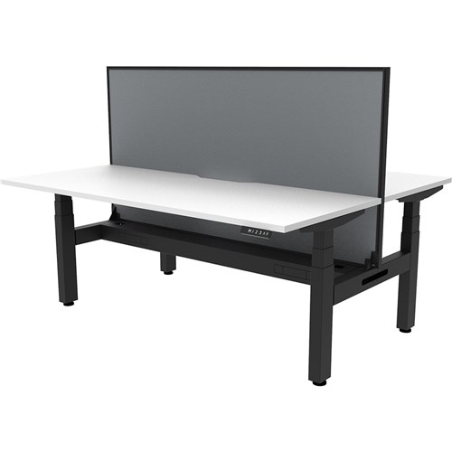 The entire Boost+ range has now been performance tested and is compliant to the AFRDI standards for general safety, strength, durability and stability in all sizes and configurations based on AS/NZS 4442:201. Unit Dimension: 1800mm W x 1500mm D x 1330mm H (Overall). Per User: 1800mm W x 750mm D. Desk Height: 620-1270mm H. Includes pinnable privacy screen in grey fabric with matching black powder coated frame. 900mm H x 30mm T. Smooth and quiet adjustment at 38mm per second. Min Digital control panel with 3 pre-set positions, LED display panel, keypad safety lock and reminder alarm setting. Natural White coloured worksurface with 750mm depth top. 50mm D scallop cut out to rear. Back to Back Workstation with Screen and Cable Tray. Dual motor 3 stage motorised legs. 140kg weight loading capacity. 10 Year Manufacturer's Warranty. Delivery, installation and assembly charges may apply to furniture. Please enquire to confirm.