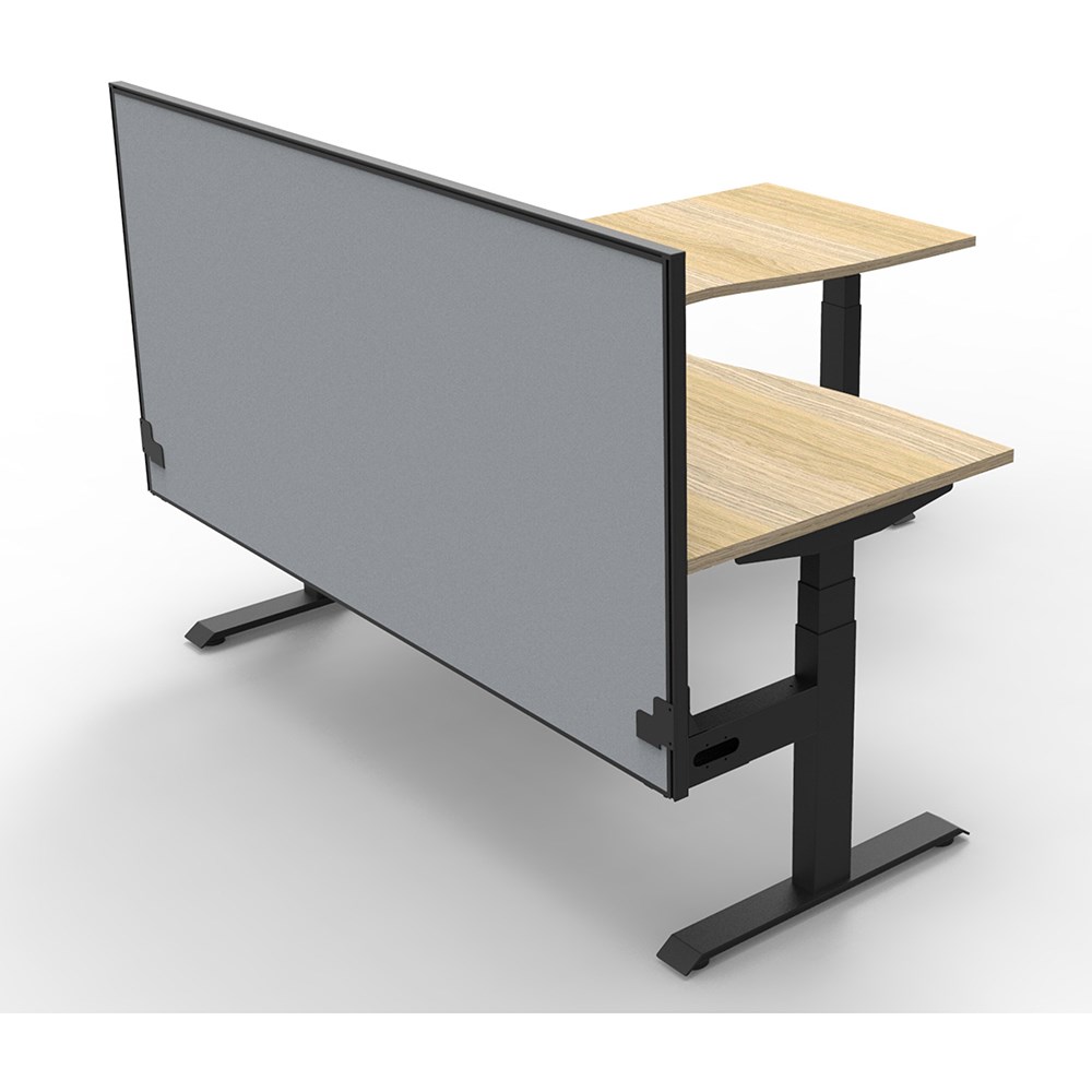The entire Boost+ range has now been performance tested and is compliant to the AFRDI standards for general safety, strength, durability and stability in all sizes and configurations based on AS/NZS 4442:201. Unit Dimension:1800mm W x 1800mm W x 750mm D x 620mm - 1270mm H. Includes pinnable privacy screen in grey fabric with matching black powder coated frame. 900mm H x 30mm T. Smooth and quiet adjustment at 38mm per second. Digital control panel with 3 pre-set positions, LED display panel, keypad safety lock and reminder alarm setting. Natural Oak coloured worksurface with 750mm depth top. 50mm D scallop cut out to rear. 140kg weight loading capacity. Dual Motor 3 stage motorised legs. Corner Workstation with Screen. 10 Year Manufacturer's Warranty. Delivery, installation and assembly charges may apply to furniture. Please enquire to confirm.