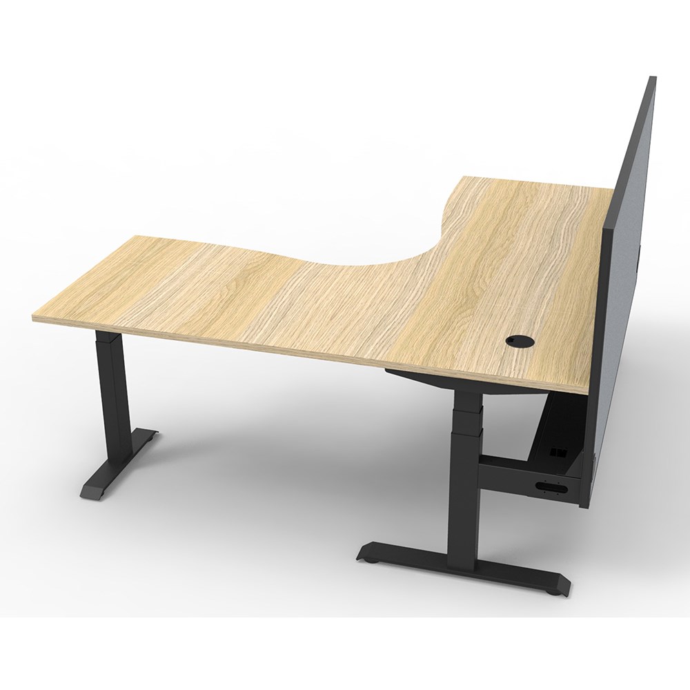 The entire Boost+ range has now been performance tested and is compliant to the AFRDI standards for general safety, strength, durability and stability in all sizes and configurations based on AS/NZS 4442:201. Unit Dimension:1500mm W x 1500mm W x 750mm D x 620mm - 1270mm H. Includes pinnable privacy screen in grey fabric with matching black powder coated frame. 900mm H x 30mm T. Keypad safety lock and reminder alarm setting. Digital control panel with 3 pre-set positions. LED display panel. Anti- collision and anti-tilt technology. Dual Motor 3 stage motorised legs. Corner Workstation with Cable Tray and Screen. 140kg weight loading capacity. 10 Year Manufacturer's Warranty. Delivery, installation and assembly charges may apply to furniture. Please enquire to confirm.