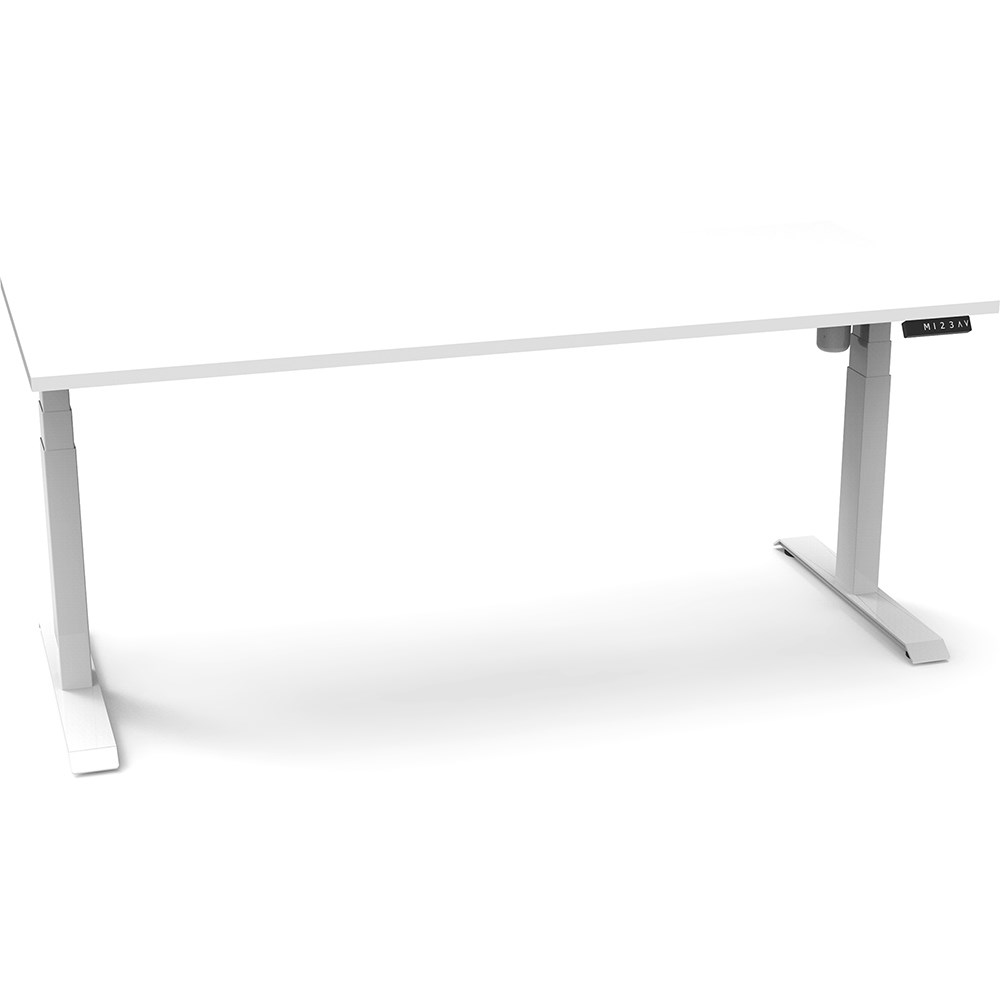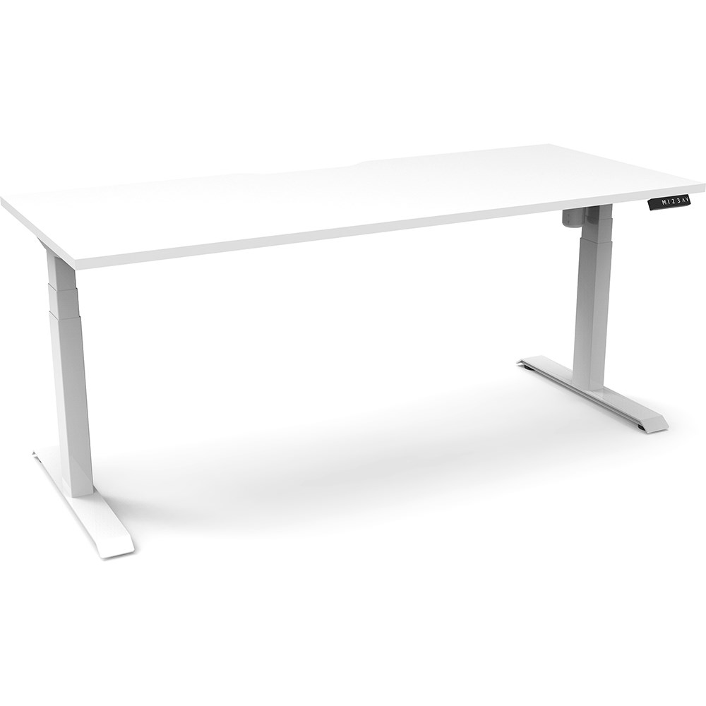 White top with White frame. Unit Dimension: 1800mm W x 750mm D x 620-1270mm H. E0 rated top. Powdercoat base. Digital control panel with 3 pre-set positions, LED display panel, keypad safety lock & reminder alarm setting. Anti-collision technology, noise emission of less than 50DB. Lifting capacity of 80kg with a max speed of 25mm per second. 700mm wide foot size with adjustable leveling feet. 10 Year Manufacturer's Warranty. Delivery, installation and assembly charges may apply to furniture. Please enquire to confirm.
