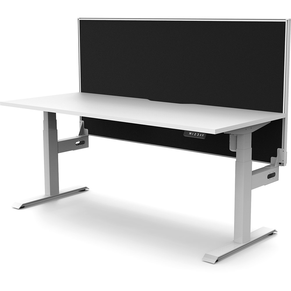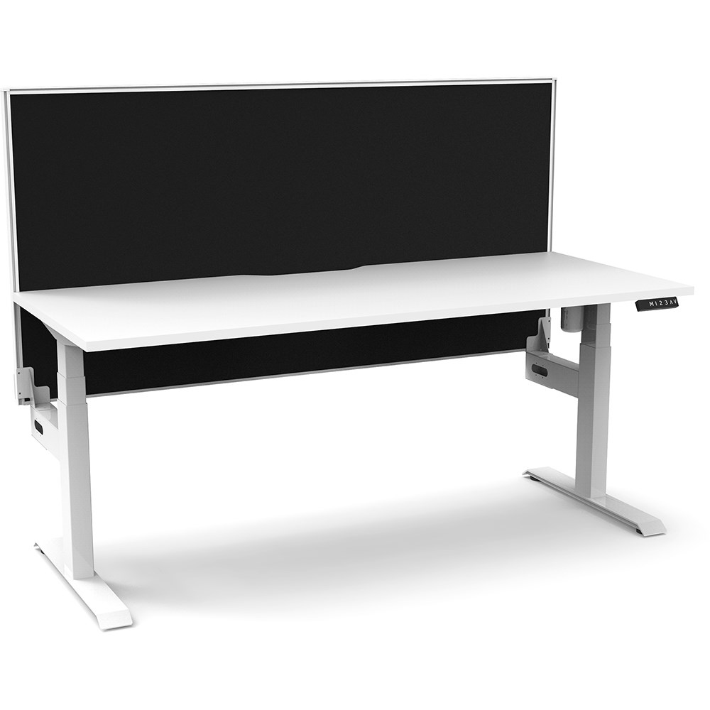 White top with White frame. Unit Dimension: 1500mm W x 750mm D x 1330mm H. 620-1270mm height range for desk. E0 rated top. Powdercoat base. Digital control panel with 3 pre-set positions, LED display panel, keypad safety lock & reminder alarm setting. Anti-collision technology, noise emission of less than 50DB. Lifting capacity of 80kg with a max speed of 25mm per second. 700mm wide foot size with adjustable leveling feet. Comes with 30mm thick privacy screen. 10 Year Manufacturer's Warranty. Delivery, installation and assembly charges may apply to furniture. Please enquire to confirm.