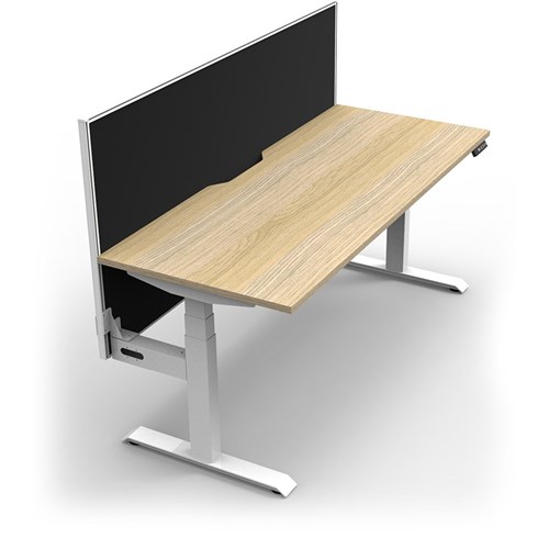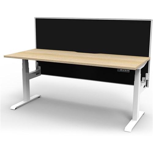 The entire Boost+ range has now been performance tested and is compliant to the AFRDI standards for general safety, strength, durability and stability in all sizes and configurations based on AS/NZS 4442:201. Natural Oak top White frame. Unit Dimensions: 1800W x 750D x 1330mmH. 270mm table top height. Single workstation with screen. E0 rated top. Powdercoat base. Keypad safety lock and reminder alarm setting. Digital control panel with 3 pre-set positions and LED display panel. Anti- collision and anti-tilt technology. 120kg weight loading capacity. 10 Year Manufacturer's Warranty. Delivery, installation and assembly charges may apply to furniture. Please enquire to confirm.