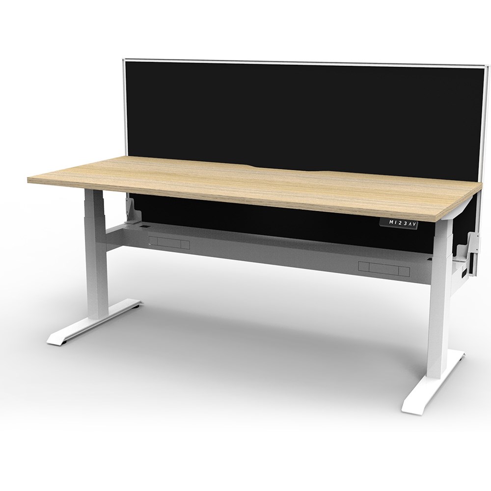 The entire Boost+ range has now been performance tested and is compliant to the AFRDI standards for general safety, strength, durability and stability in all sizes and configurations based on AS/NZS 4442:201. Natural Oak top White frame. Unit Dimensions: 1500W x 750D x 1330mmH. 1270mm table top height. E0 rated top, powder coated base. Keypad safety lock and reminder alarm setting. Digital control panel with 3 pre-set positions and LED display panel. Anti- collision and anti-tilt technology. Dual motor 3 stage motorised legs. 120kg weight loading capacity. 10 Year Manufacturer's Warranty. Delivery, installation and assembly charges may apply to furniture. Please enquire to confirm.