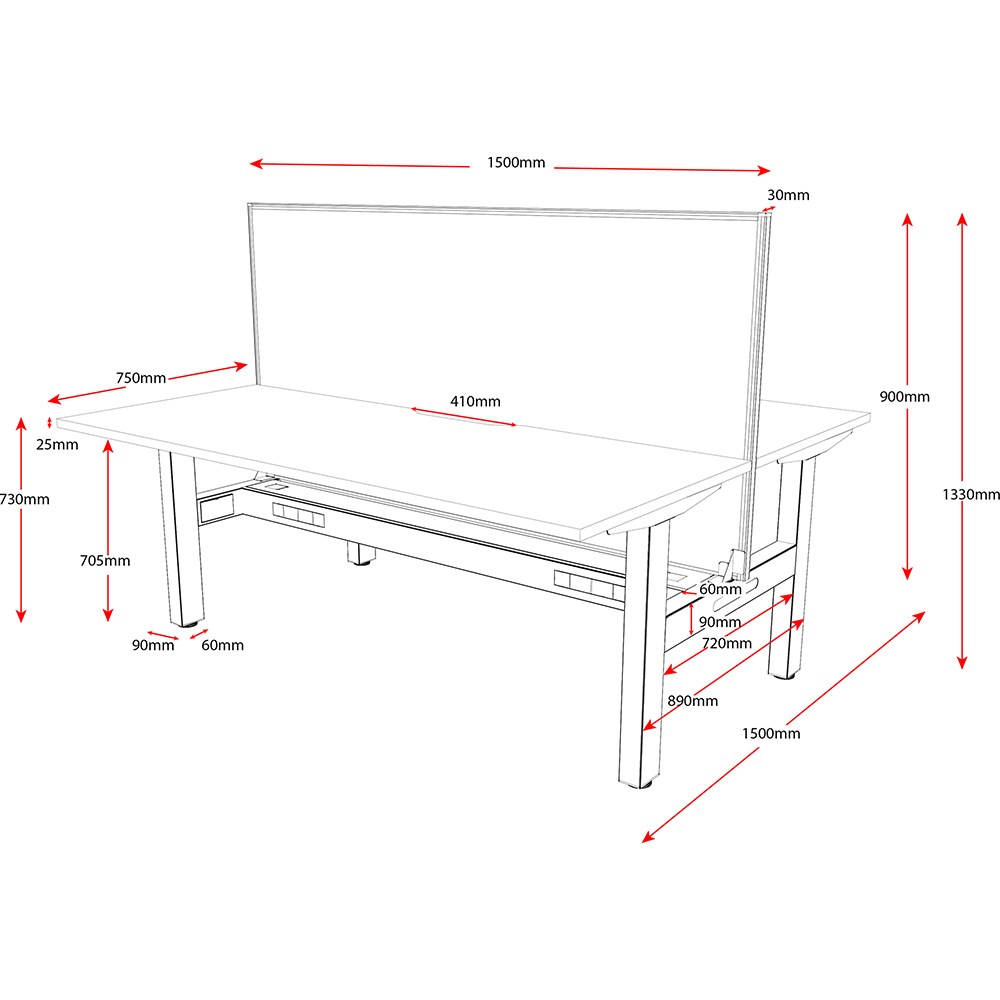 Fixed height desks to match the Boost+ range. White top with White frame. Unit Dimension: 1500mm W x 1500mm D x 730mm H. 750mm depth desk per user. E0 rated top. Powdercoat base. 10 Year Manufacturer's Warranty. Delivery, installation and assembly charges may apply to furniture. Please enquire to confirm.