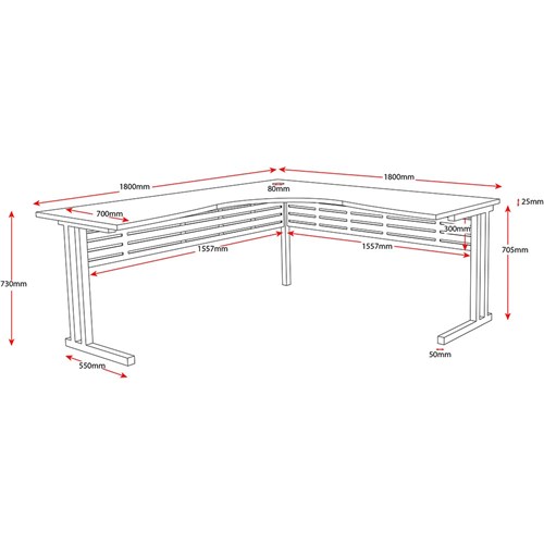 Rapidline C Leg Corner Workstation 1800/1800W x 700D x 730mmH Beech/Silver
