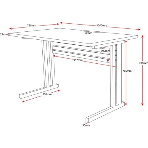 Rapidline C Leg Desk 1200W x 750D x 730mmH Natural Oak/Silver