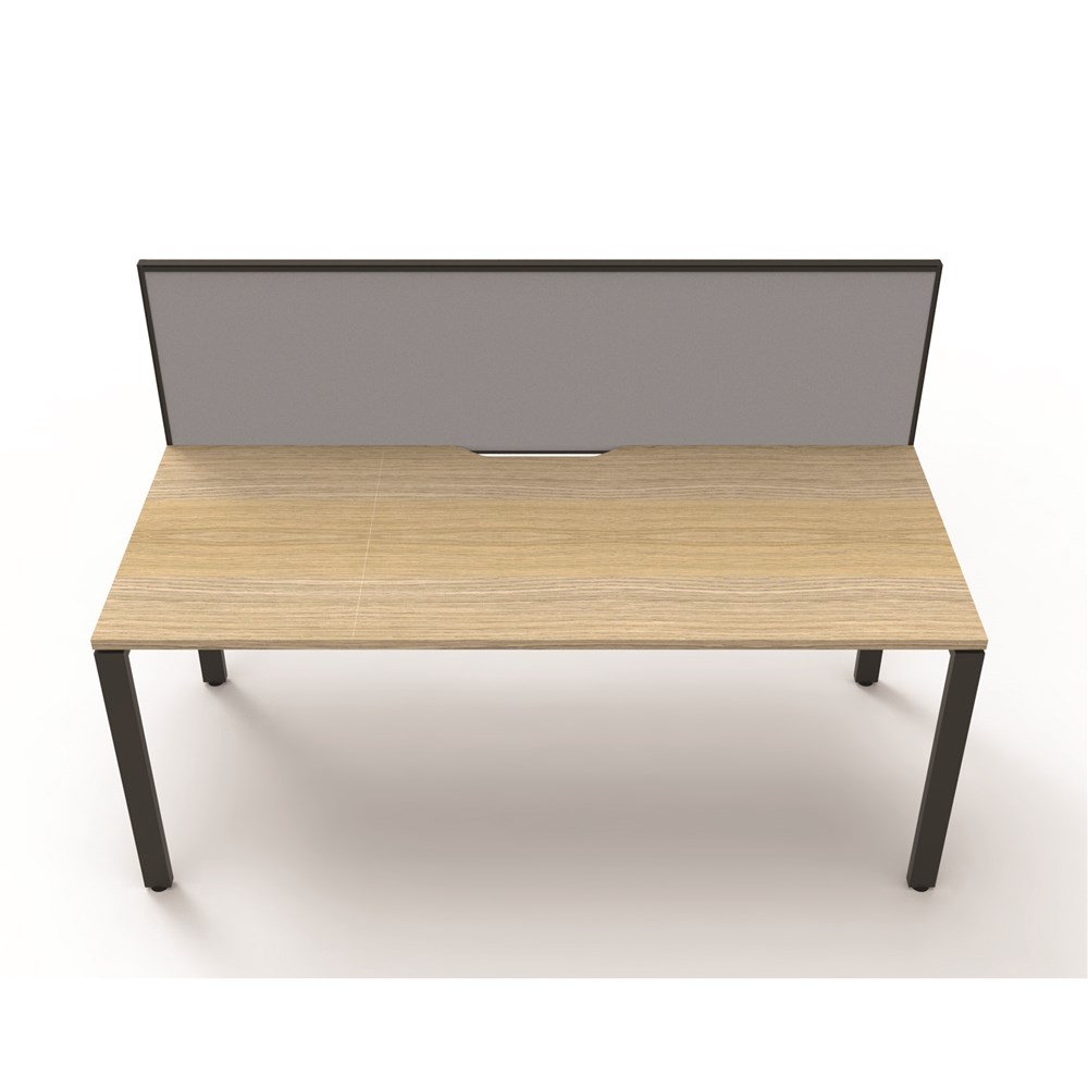 Maximise space and create an efficient working environment with Deluxe Rapid Infinity. Configure multiple workstations together to create pods of desks. Overall: 1500mm W x 780mm D x 1200mm H (including screen). Per User: 1500mm W x 750mm D x 730mm H. 495mm H x 30mm T pinnable privacy screen upholstered in grey fabric with matching black powder coat extrusion. Natural Oak worksurface with 410mm W x 50mm D scallop cable access. 60mm x 30mm Profile Leg adds a minimalist look to each workstation. Deeper 750mm top. Double support rail for extra strength. E0 Enviroboard. 5 Year Manufacturer's Warranty. Delivery, installation and assembly charges may apply to furniture. Please enquire to confirm.