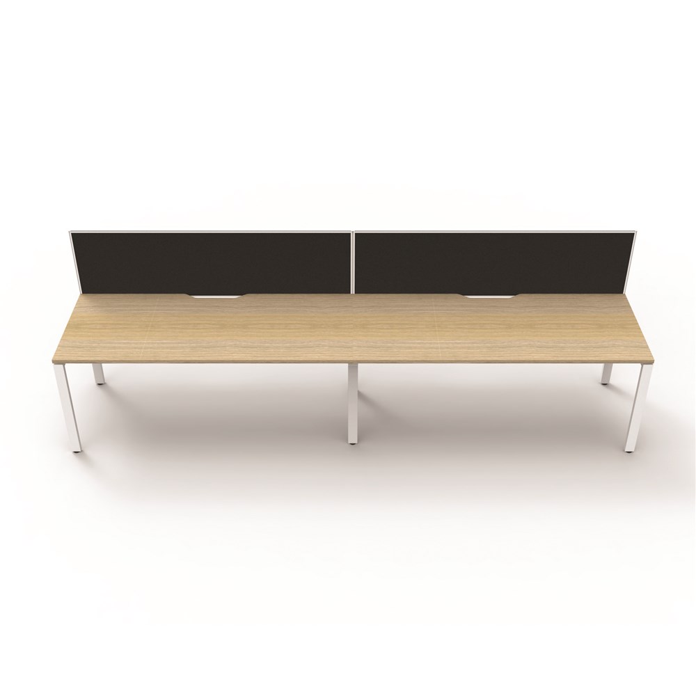 Maximise space and create an efficient working environment with Deluxe Rapid Infinity. Configure multiple workstations together to create pods of desks. Overall: 2400mm W x 780mm D x 1200mm H (including screen). Per User: 1200mm W x 750mm D x 730mm H. 495mm H x 30mm T pinnable privacy screen upholstered in black fabric with matching white powder coat extrusion. Natural Oak worksurface with 410mm W x 50mm D scallop cable access. 60mm x 30mm Profile Leg adds a minimalist look to each workstation. Deeper 750mm top. Double support rail for extra strength. E0 Enviroboard. 5 Year Manufacturer's Warranty. Delivery, installation and assembly charges may apply to furniture. Please enquire to confirm.