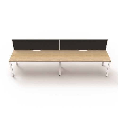 Maximise space and create an efficient working environment with Deluxe Rapid Infinity. Configure multiple workstations together to create pods of desks. Overall: 3000mm W x 780mm D x 1200mm H (including screen). Per User: 1500mm W x 750mm D x 730mm H. 495mm H x 30mm T pinnable privacy screen upholstered in black fabric with matching white powder coat extrusion. Natural Oak worksurface with 410mm W x 50mm D scallop cable access. 60mm x 30mm Profile Leg adds a minimalist look to each workstation. Deeper 750mm top. Double support rail for extra strength. E0 Enviroboard. 5 Year Manufacturer's Warranty. Delivery, installation and assembly charges may apply to furniture. Please enquire to confirm.