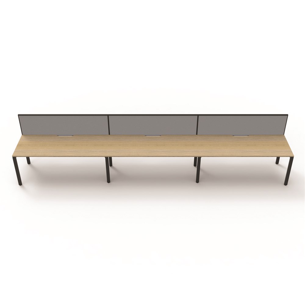 Maximise space and create an efficient working environment with Deluxe Rapid Infinity. Configure multiple workstations together to create pods of desks. Overall: 3600mm W x 780mm D x 1200mm H (including screen). Per User: 1200mm W x 750mm D x 730mm H. 495mm H x 30mm T pinnable privacy screen upholstered in grey fabric with matching black powder coat extrusion. Natural Oak worksurface with 410mm W x 50mm D scallop cable access. 60mm x 30mm Profile Leg adds a minimalist look to each workstation. Deeper 750mm top. Double support rail for extra strength. E0 Enviroboard. 5 Year Manufacturer's Warranty. Delivery, installation and assembly charges may apply to furniture. Please enquire to confirm.
