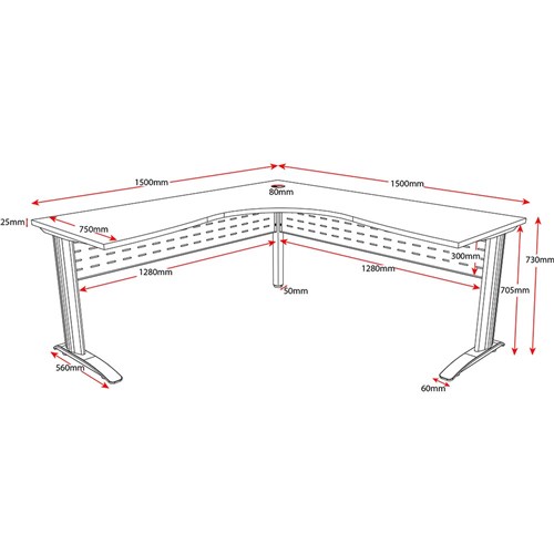 Natural Oak and Silver in colour. Sturdy powder coated frame and legs. Comes with metal perforated modesty panel. E0 melamine top. 1 x 80mm cable entry hole in corner of top. 750mm deep top for more workspace. Adjustable feet. 5 Years Manufacturer's Warranty. Delivery, installation and assembly charges may apply to furniture. Please enquire to confirm.