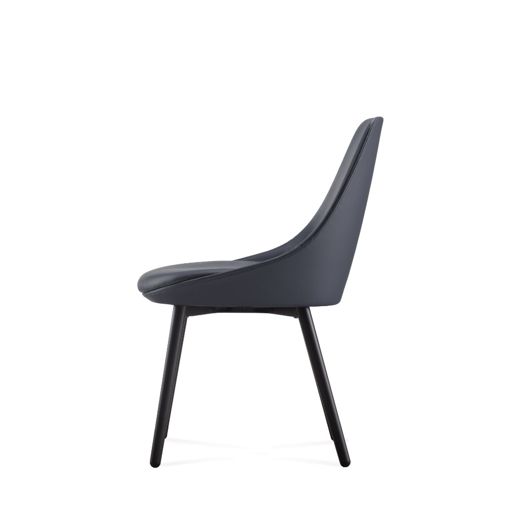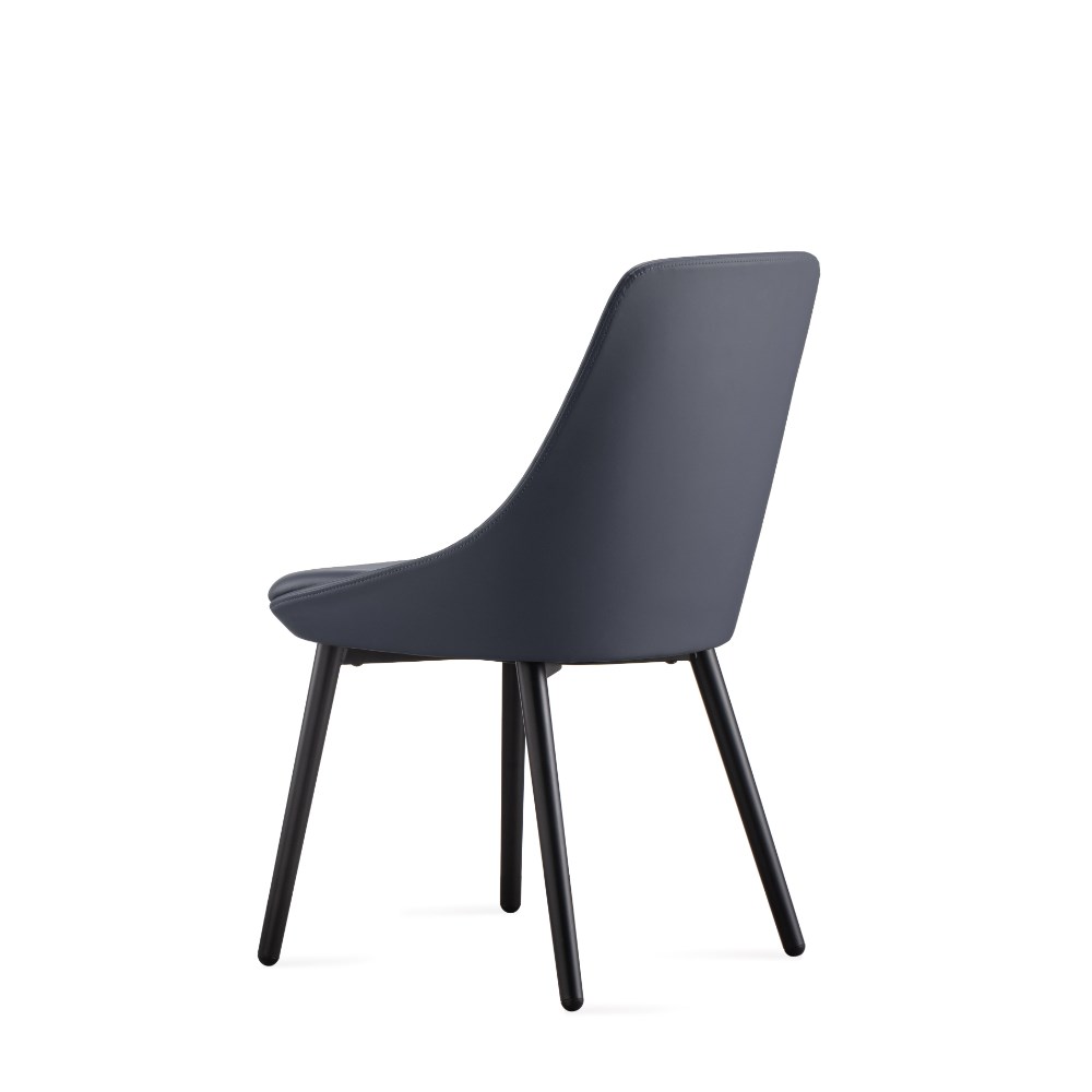 Eros breakout room or dining chair. Robust steel 4 leg frame finished in black powder coat French Navy PU leather seat. Dimensions: 530W x 580D x 830H. GreenGuard Gold certified. 5 Year Manufacturer's Warranty. Delivery, installation and assembly charges may apply to furniture. Please enquire to confirm.
