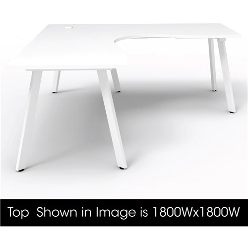 60mm x 30mm Splayed Leg Powder Coated Metal Frame Corner Desk Tops with Cable Port Hole Dual Cross Bar For Added Stability E1 Enviroboard Melamine Worksurface Adjustable Levelling Feet 5 Year Manufacturer's Warranty Delivery, installation and assembly charges may apply to furniture. Please enquire to confirm.